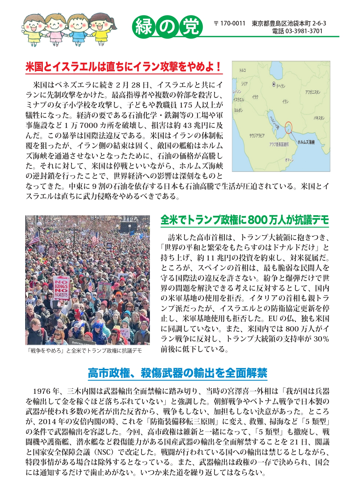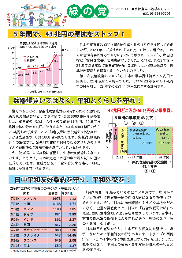 緑の党は、あなたの入党を歓迎いたします。本党へのカンパをお願いいたします。